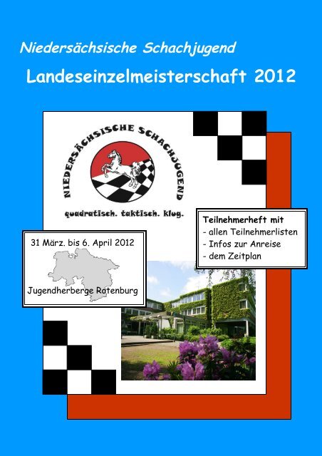 Niedersächsische Senioren- Schacheinzelmeisterschaft 2022. 4 38300 Wolfenbüttel Verantwortlich für Inhalt und Gestaltung Tessa Kuschnerus 2 Grußwort Liebe Teilnehmerinnen und Teilnehmer liebe. Niedersächsische Schachjugend Turnierheft Landeseinzelmeisterschaft 2016 19.